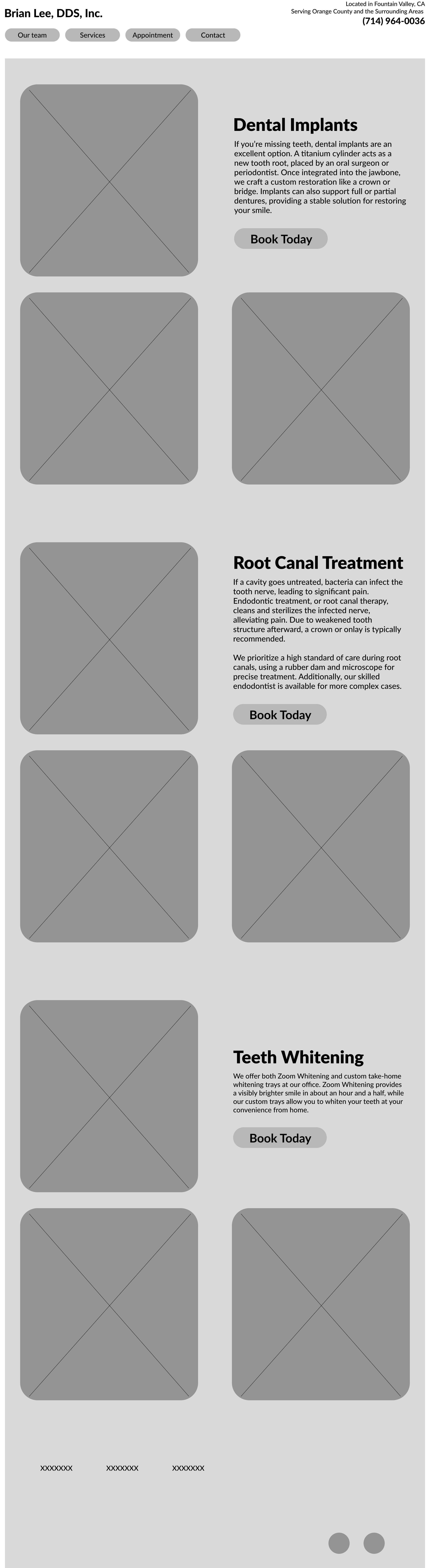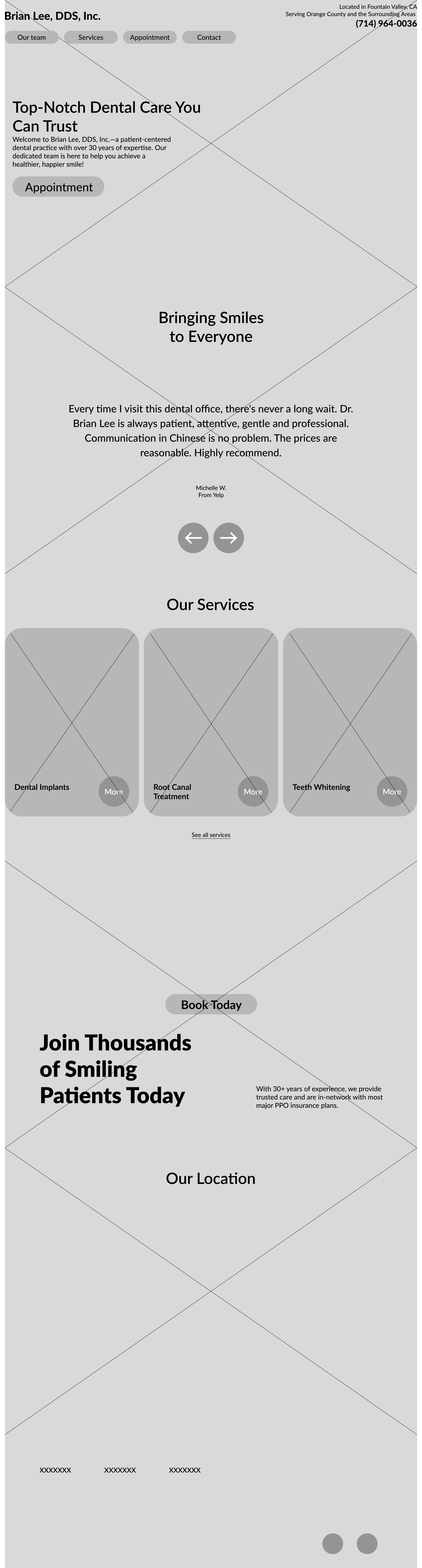 To better understand the market, I analyzed key competitors, including Tammy Tran DDS, Christopher D. Nagel, and Western Dental. While all three provide essential information about services, most fail to balance professionalism with approachability, and few highlight clinic authenticity. This analysis emphasized the opportunity to create a trust-building, user-friendly design tailored to Dr. Brian Lee's practice.