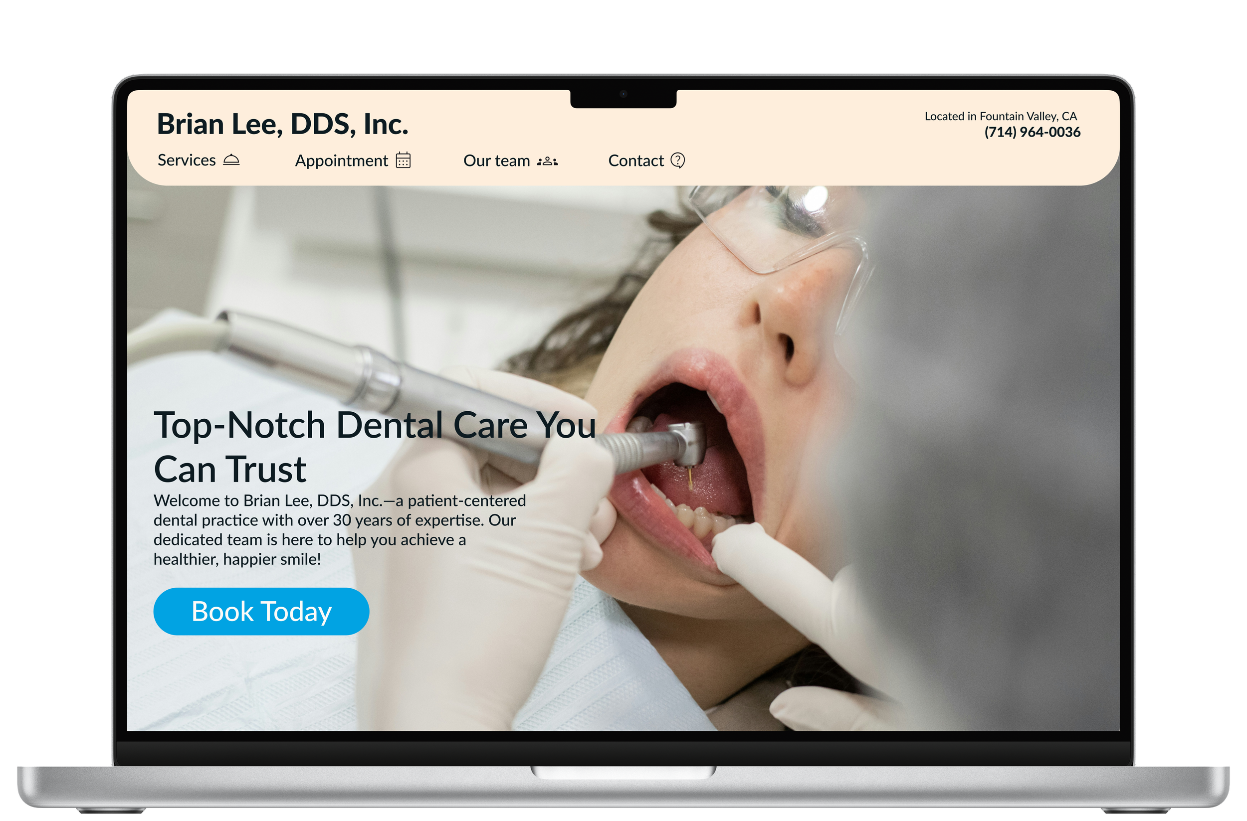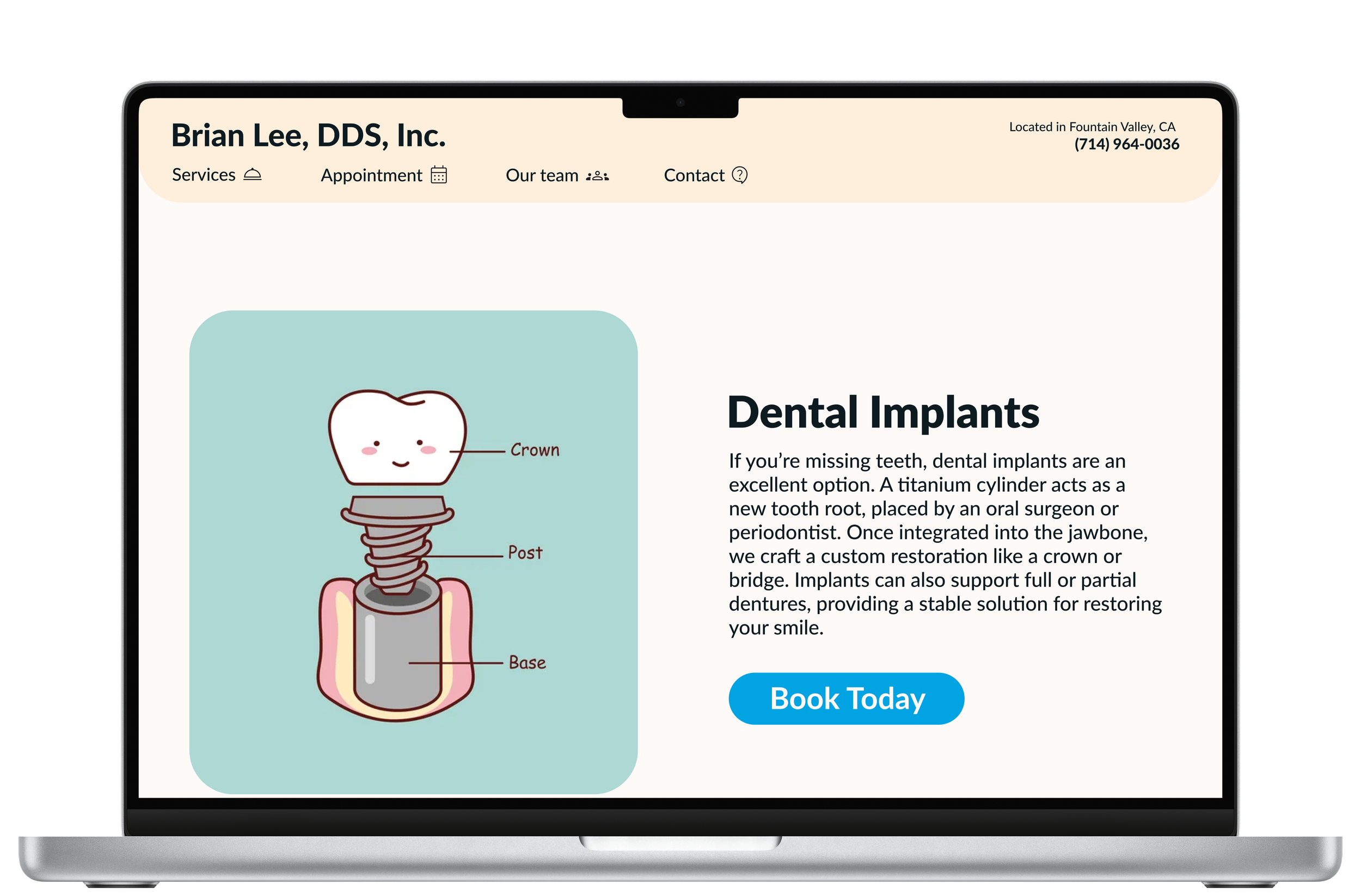 Booking an appointment is easy because the “book today” button is eye-catching.