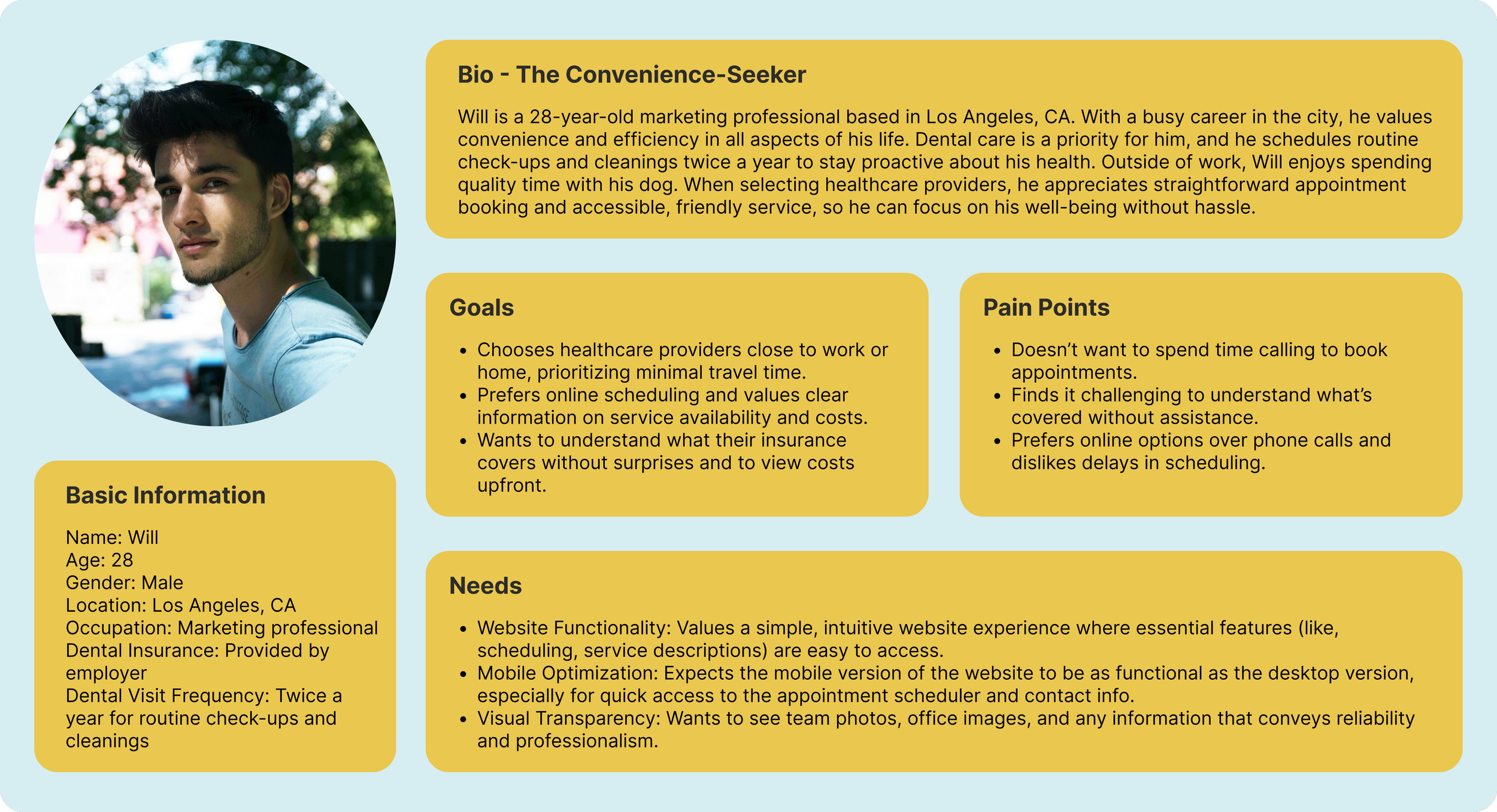 Identify key pain points, needs, and expectations of patients seeking dental services online.