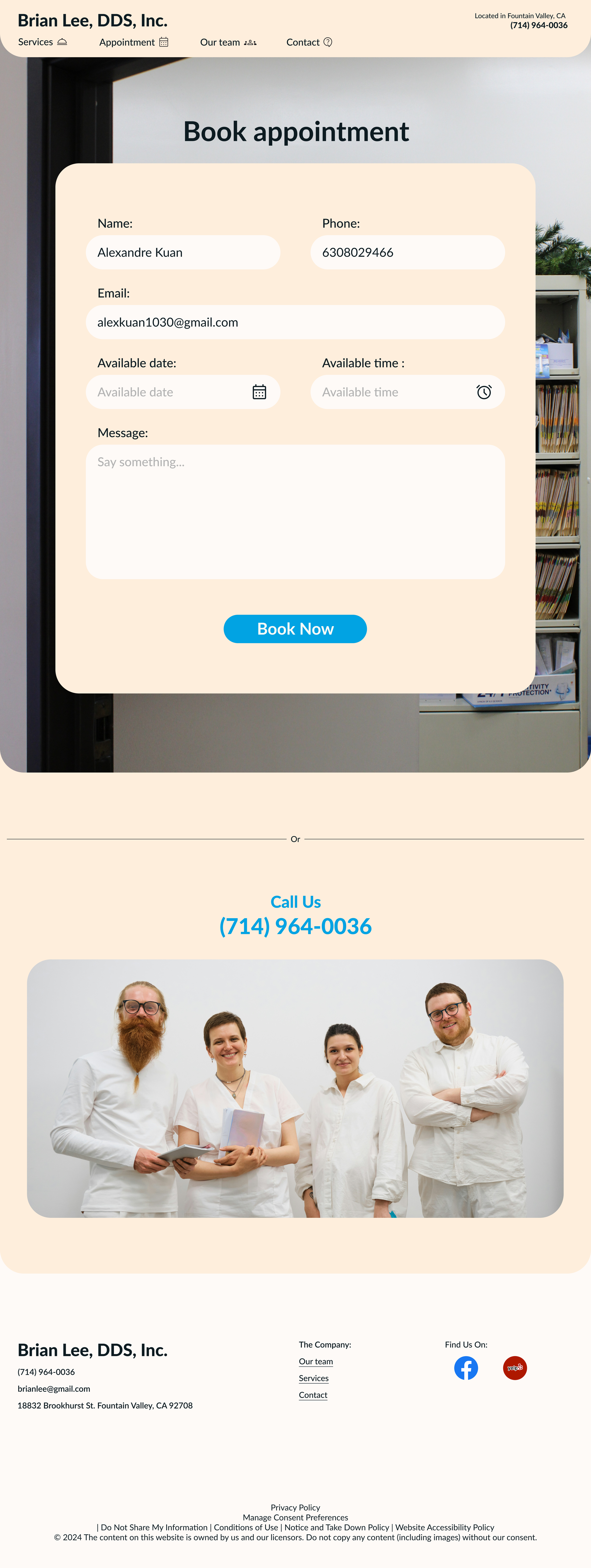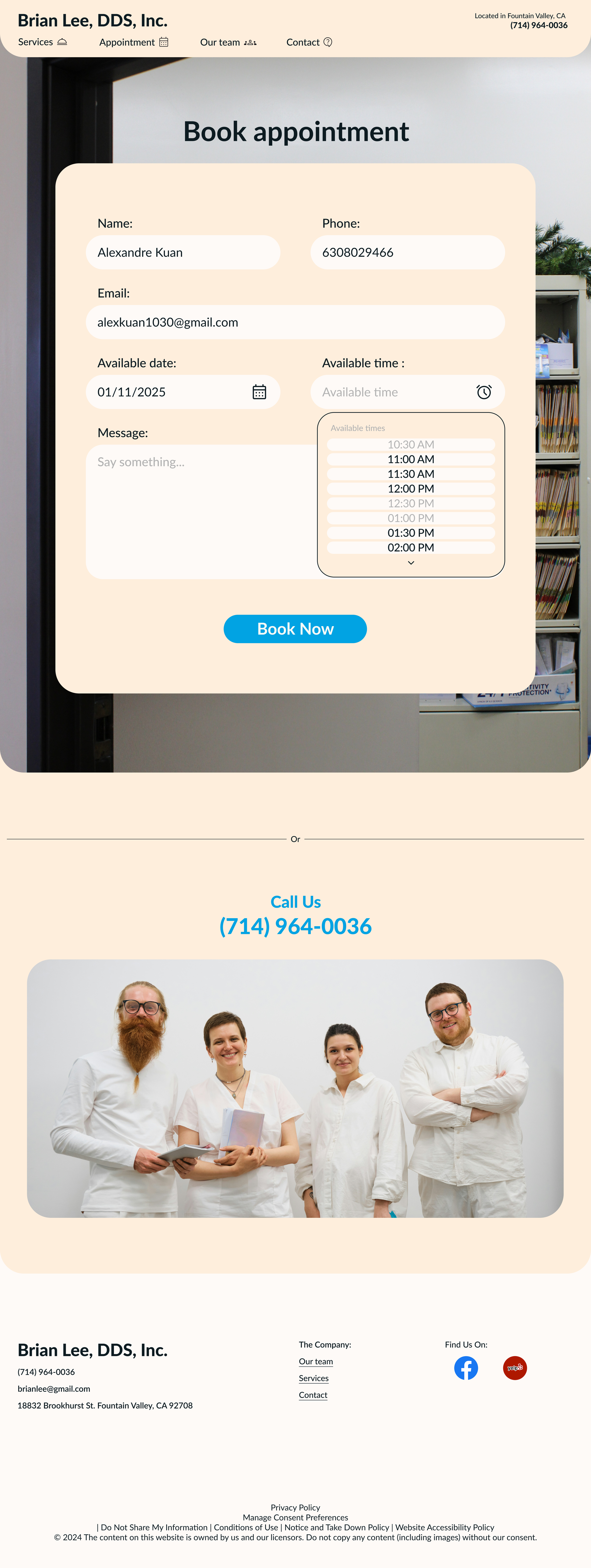Book an appointment on Brian Lee's website