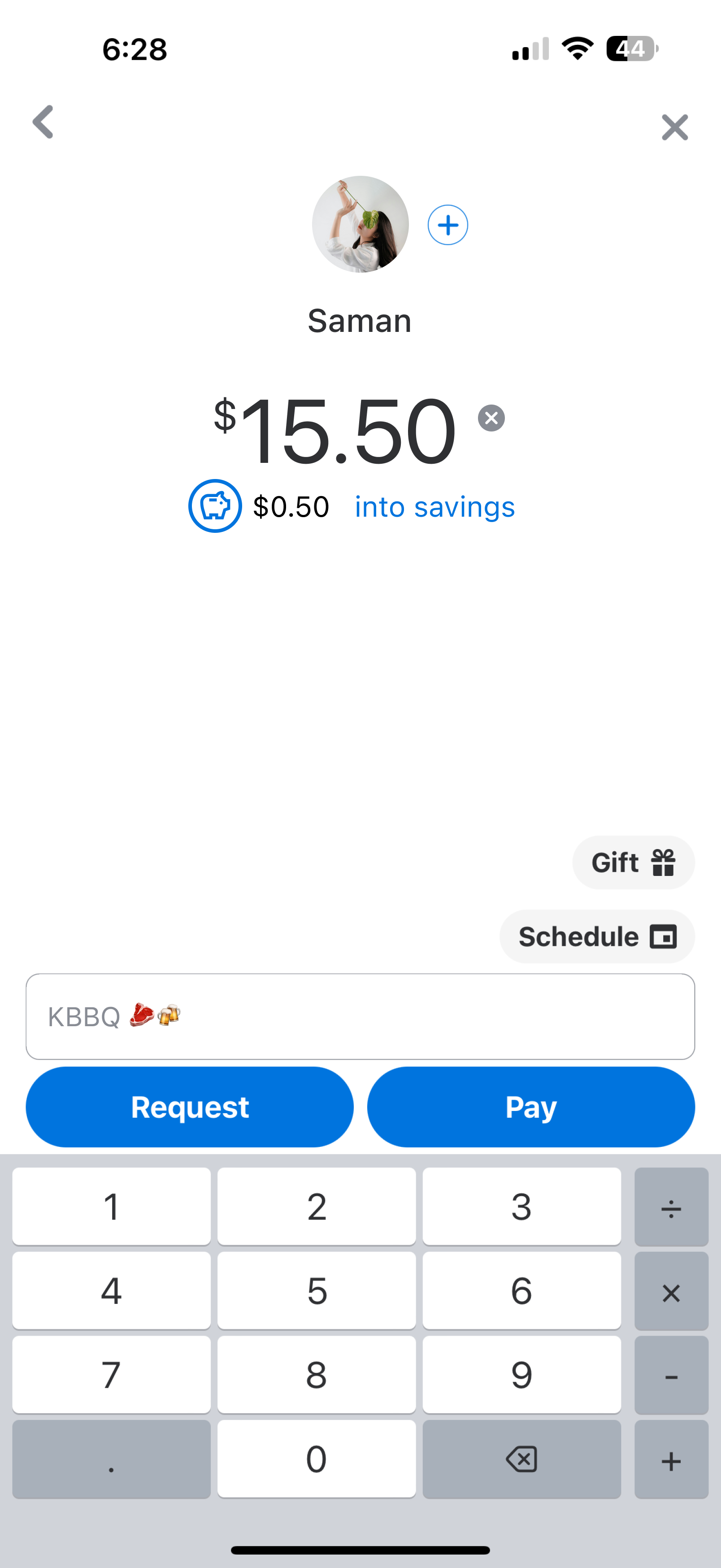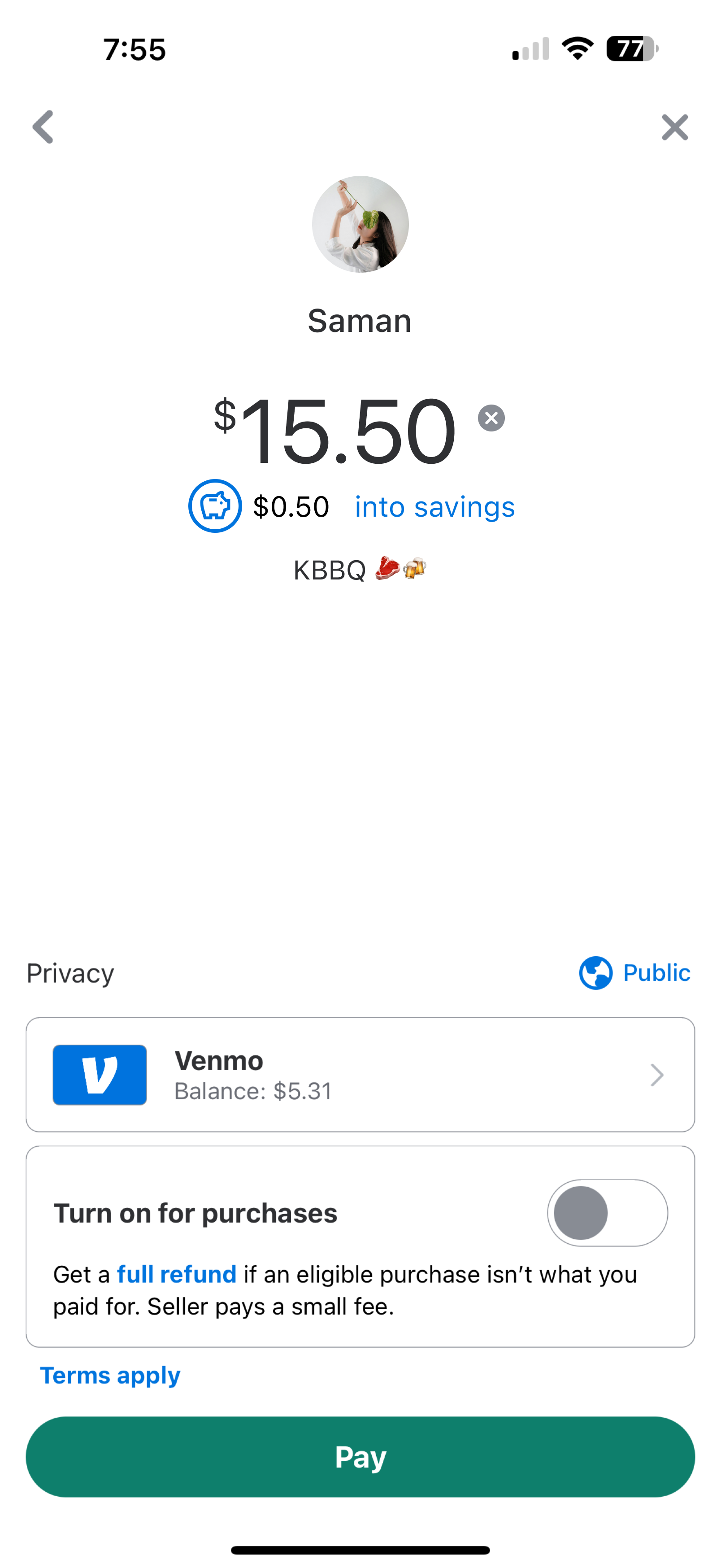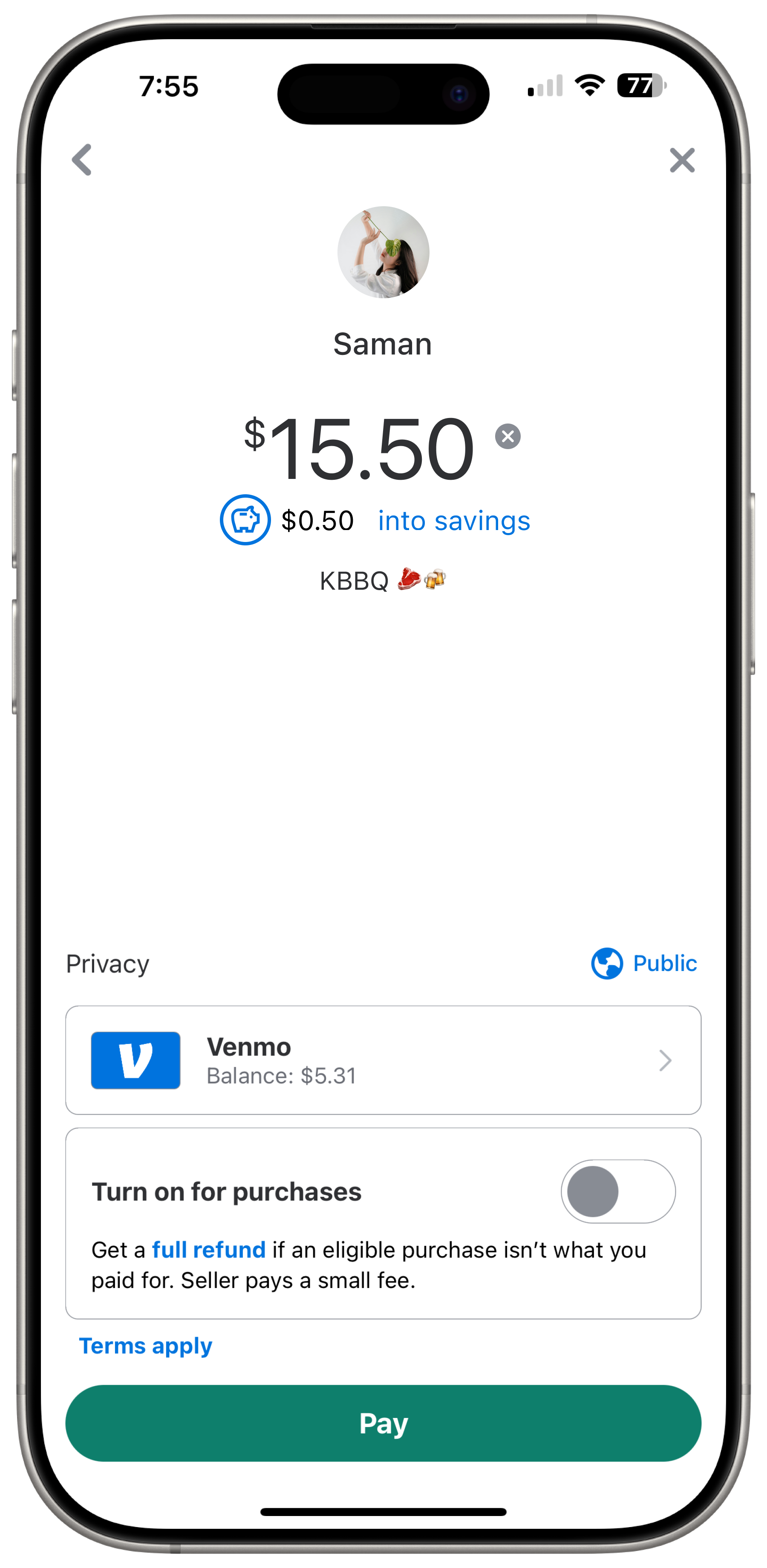 Venmo send money to a friend (with automatic savings feature turned on)