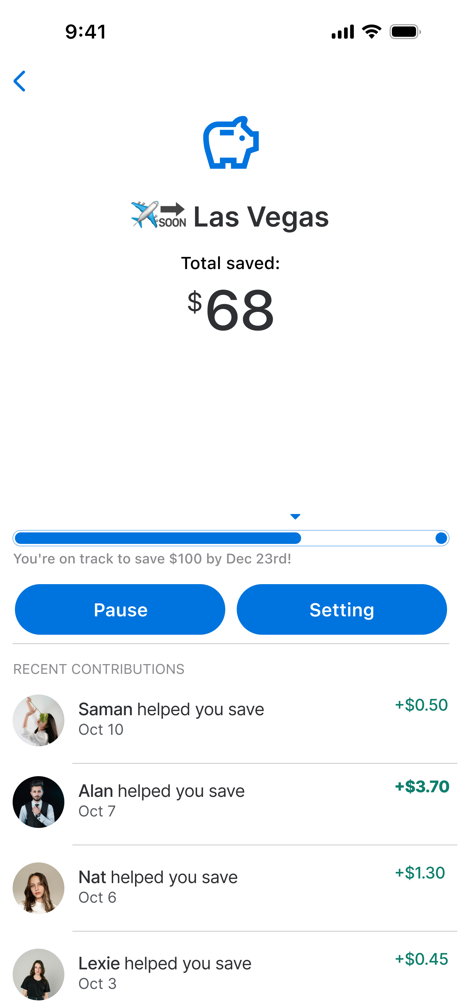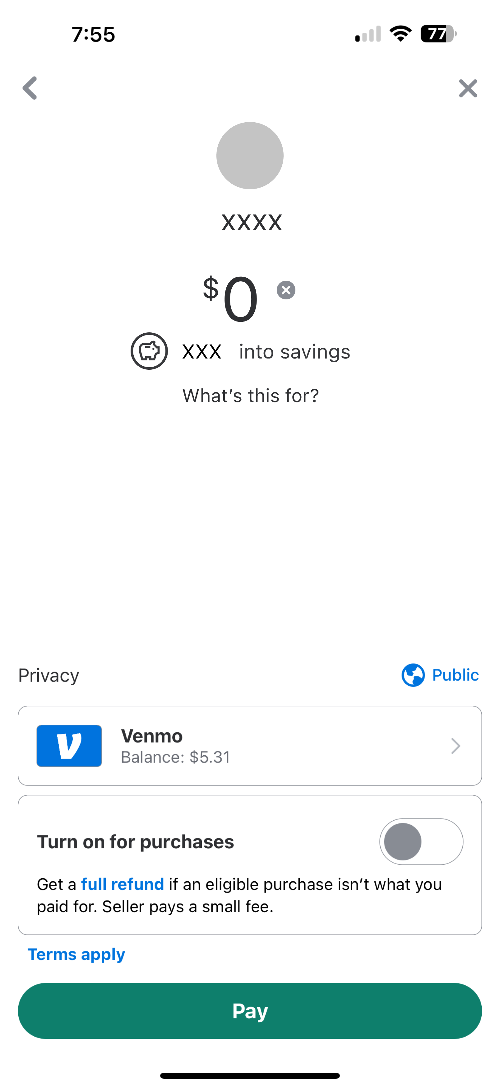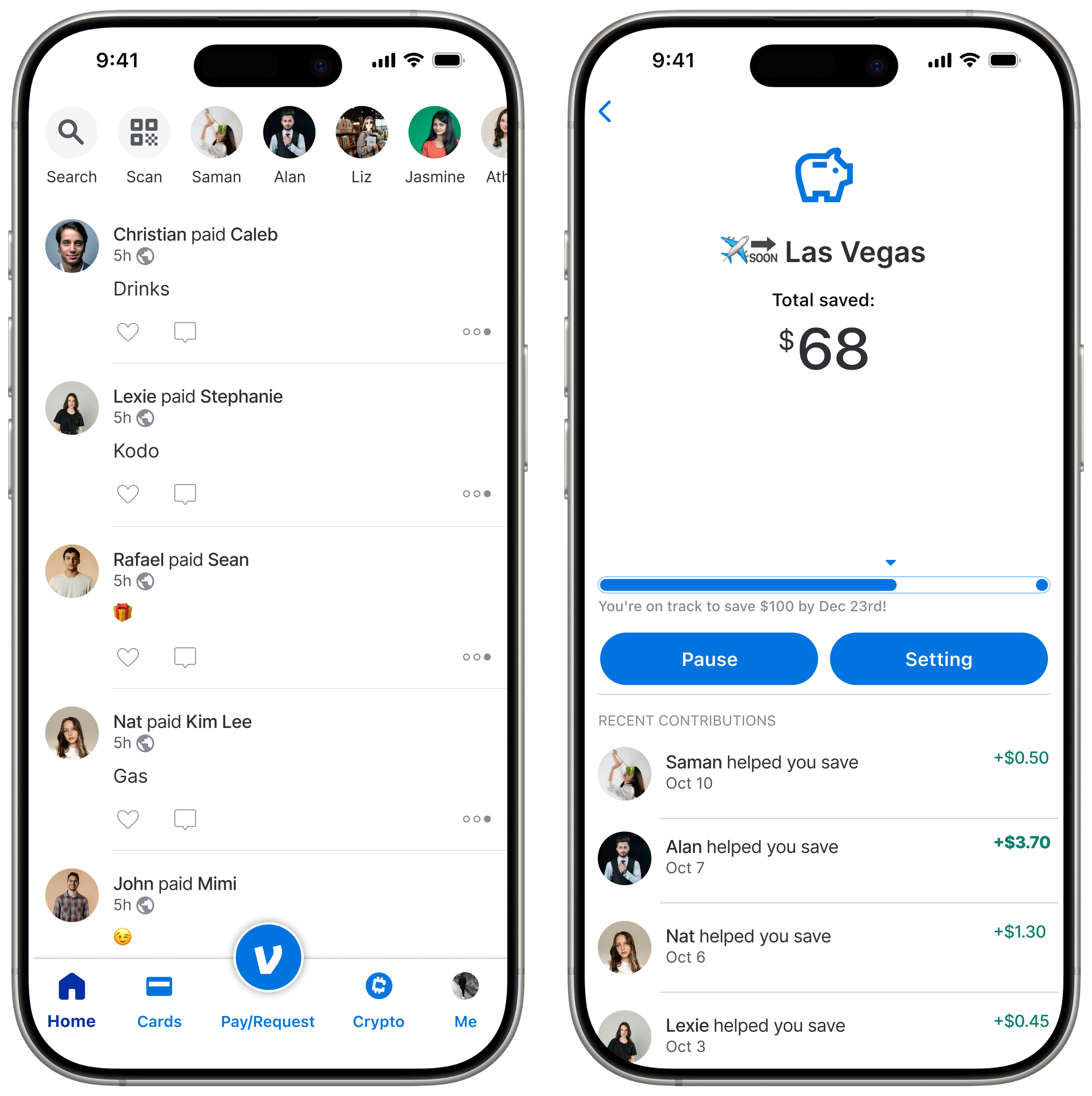 Introduce an Automatic Savings Goals feature that allows users to set custom savings targets (e.g., vacation, emergency fund) and round up payments to allocate spare change into dedicated savings funds. This feature provides a seamless way for users to passively save money, track progress, and foster positive financial habits, enhancing Venmo's value as a comprehensive financial management app.