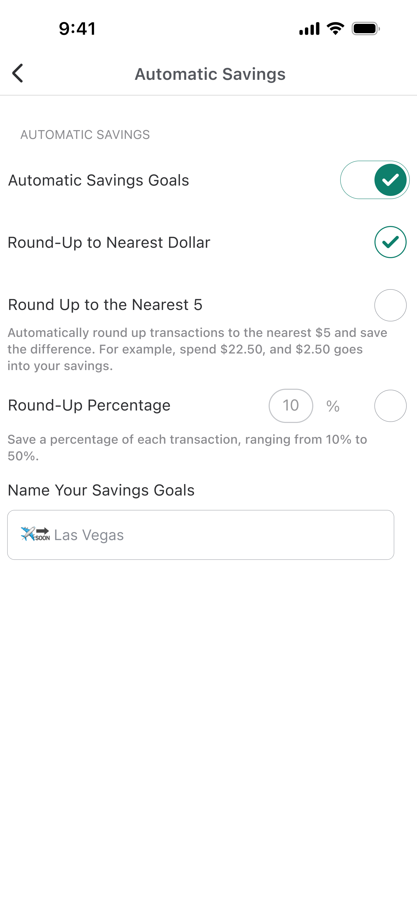 In the Automatic Savings settings, the other round-up options have lengthy descriptions, and they could be simplified.